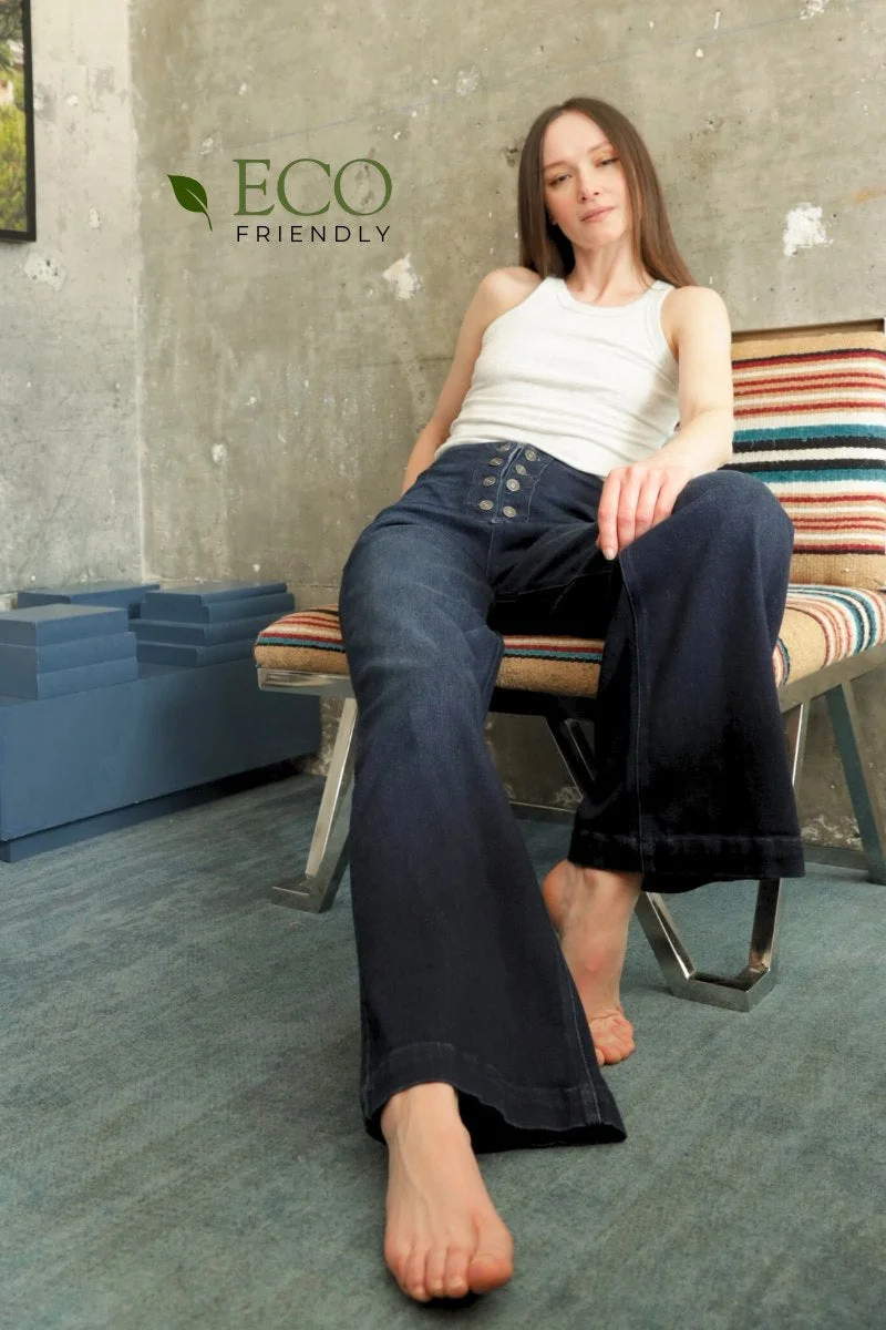 The ultra-high rise gives you a flattering, elongating silhouette, while the slim palazzo cut offers the perfect mix of breezy and sleek. The hidden button detail adds a touch of modern sophistication without disrupting the flow.